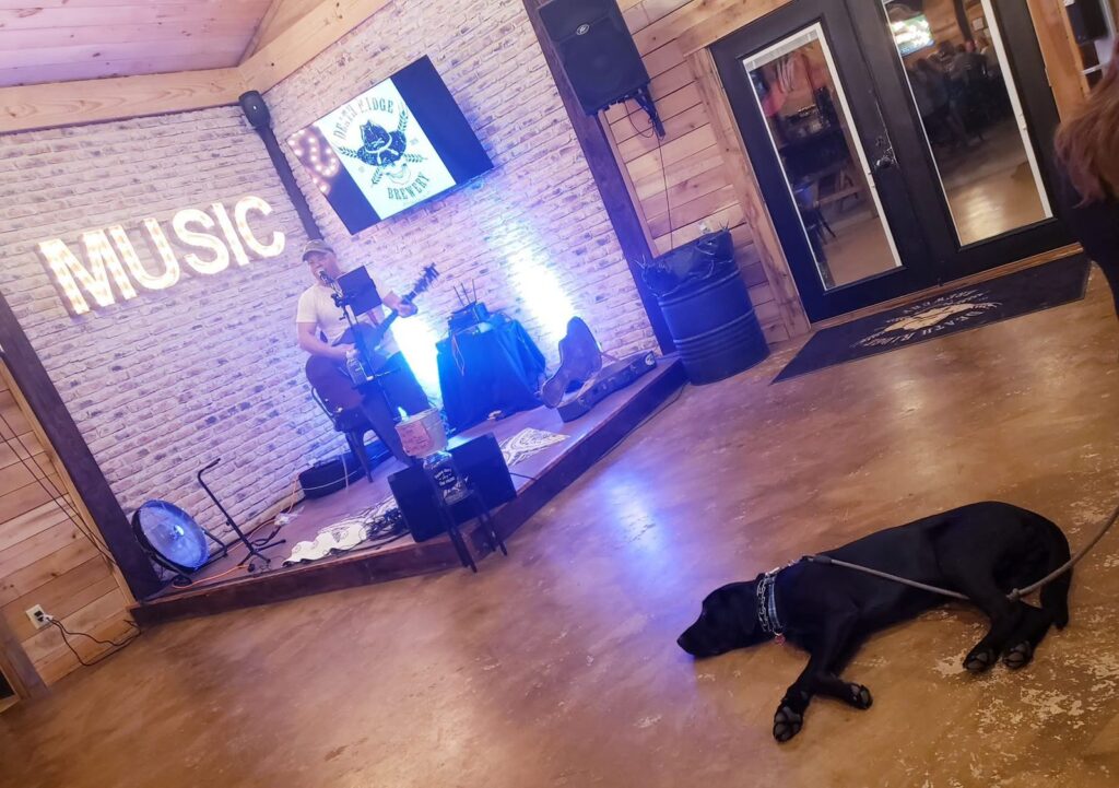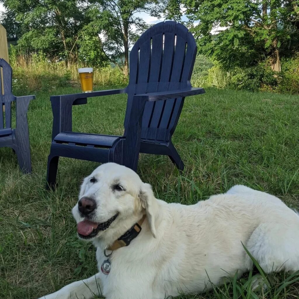 Dogs often relax beside their owners while guests enjoy the mountain views and laid back atmosphere. It’s a welcoming stop for craft beer lovers exploring the Blue Ridge region with their four legged companions.