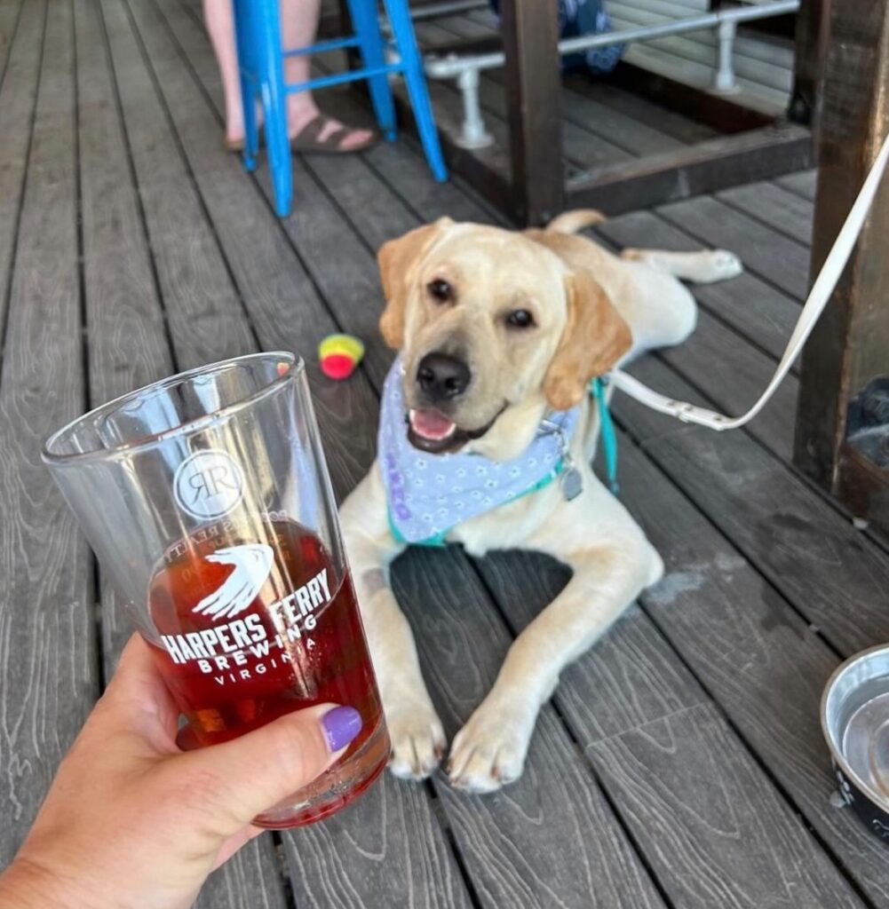 Harpers Ferry Brewing in Purcellville, Virginia, sits high above Loudoun County with sweeping views toward the Blue Ridge foothills. Dogs are welcome throughout the property, allowing visits to unfold freely from start to finish.