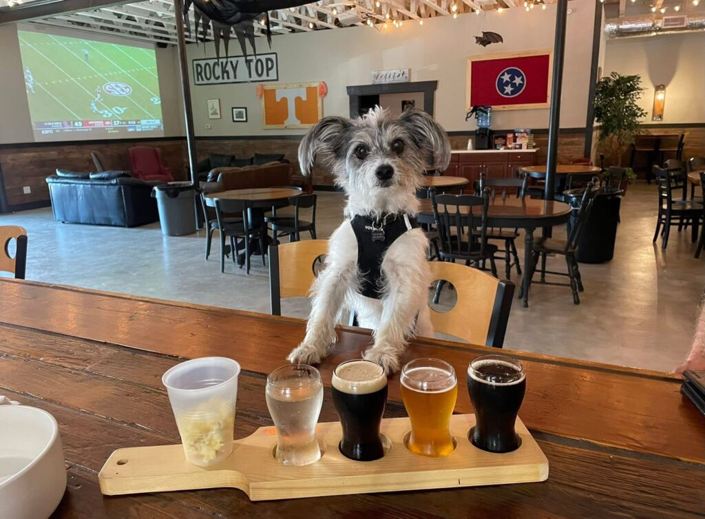Bays Mountain Brewing Company in Kingsport, Tennessee, draws influence from nearby ridgelines and open landscapes. Pets are part of the visit throughout, reinforcing the brewery’s outdoors-forward feel.