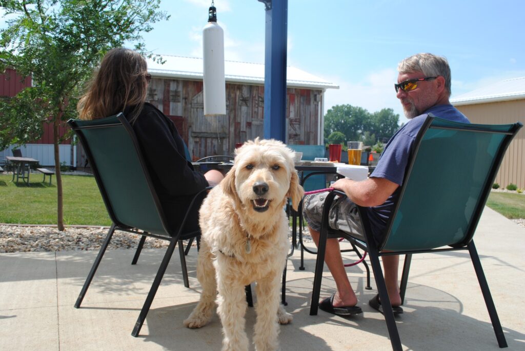 Century Farms Distillery offers a quieter experience surrounded by northwest Iowa’s wide-open landscapes. Outdoor seating provides space for dogs to stretch out while guests take in the calm setting.