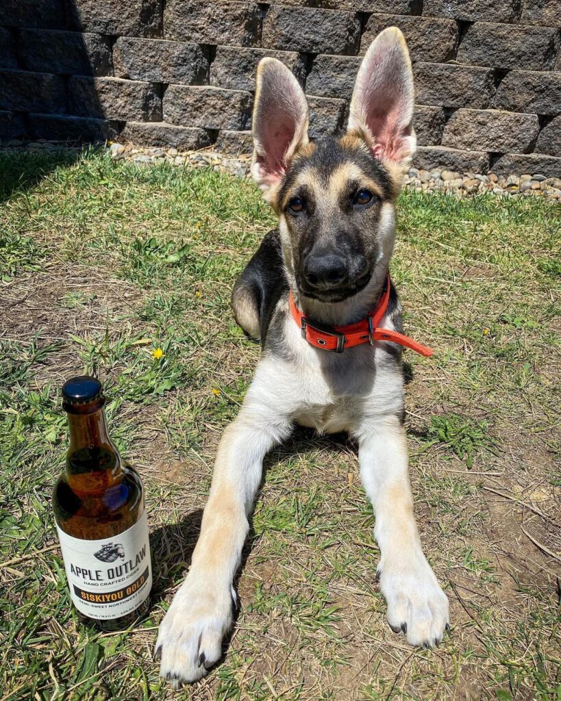 Apple Outlaw Taproom in Jacksonville, Oregon, sits among brick-lined sidewalks and preserved buildings that give the town its historic character. The patio allows dogs to relax alongside guests, making outdoor seating a natural extension of downtown strolls.