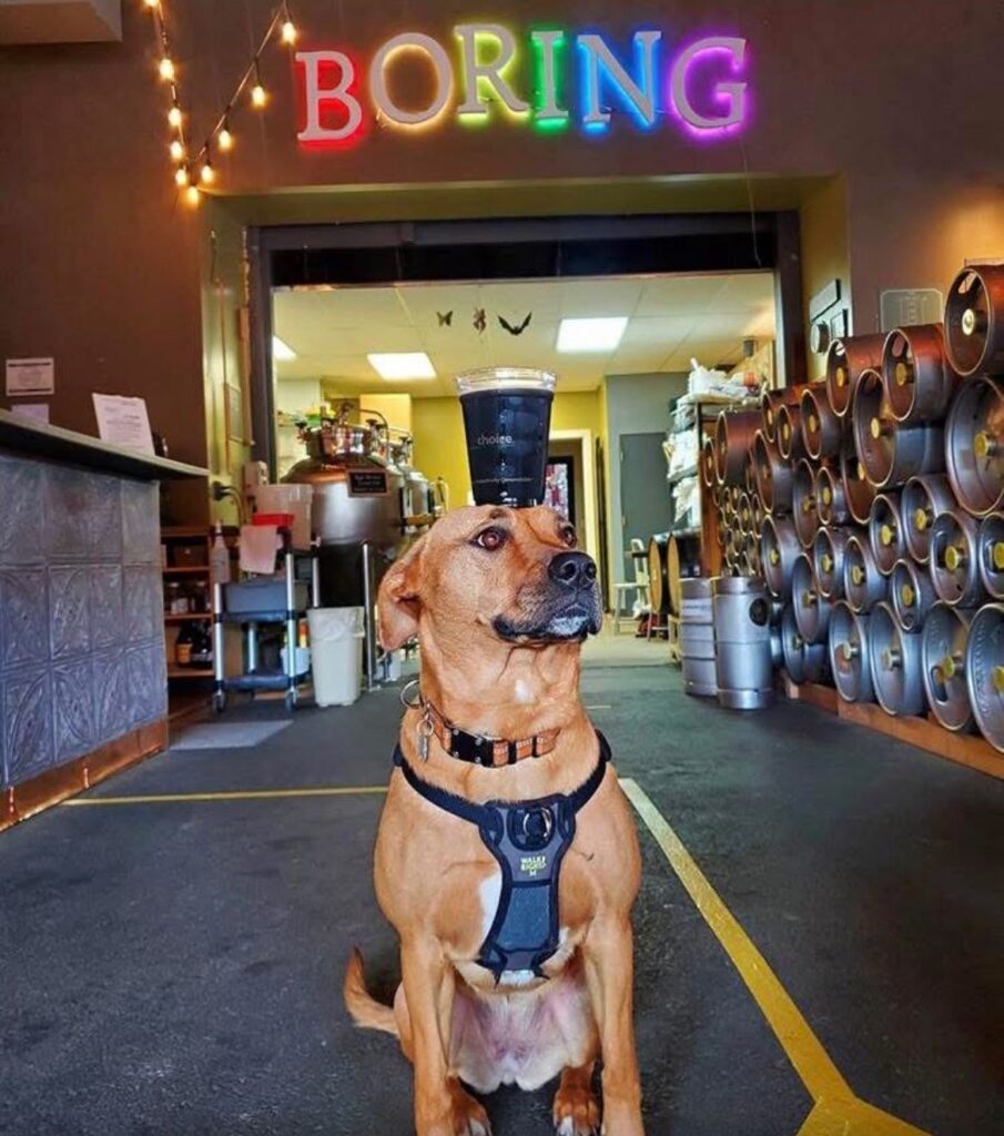 Boring Brewing Co. in Sandy, Oregon, sits near Mount Hood foothills where forest roads and scenic highways shape the journey. Dogs are welcome on the patio, making it a comfortable outdoor stop after time spent exploring nearby viewpoints.