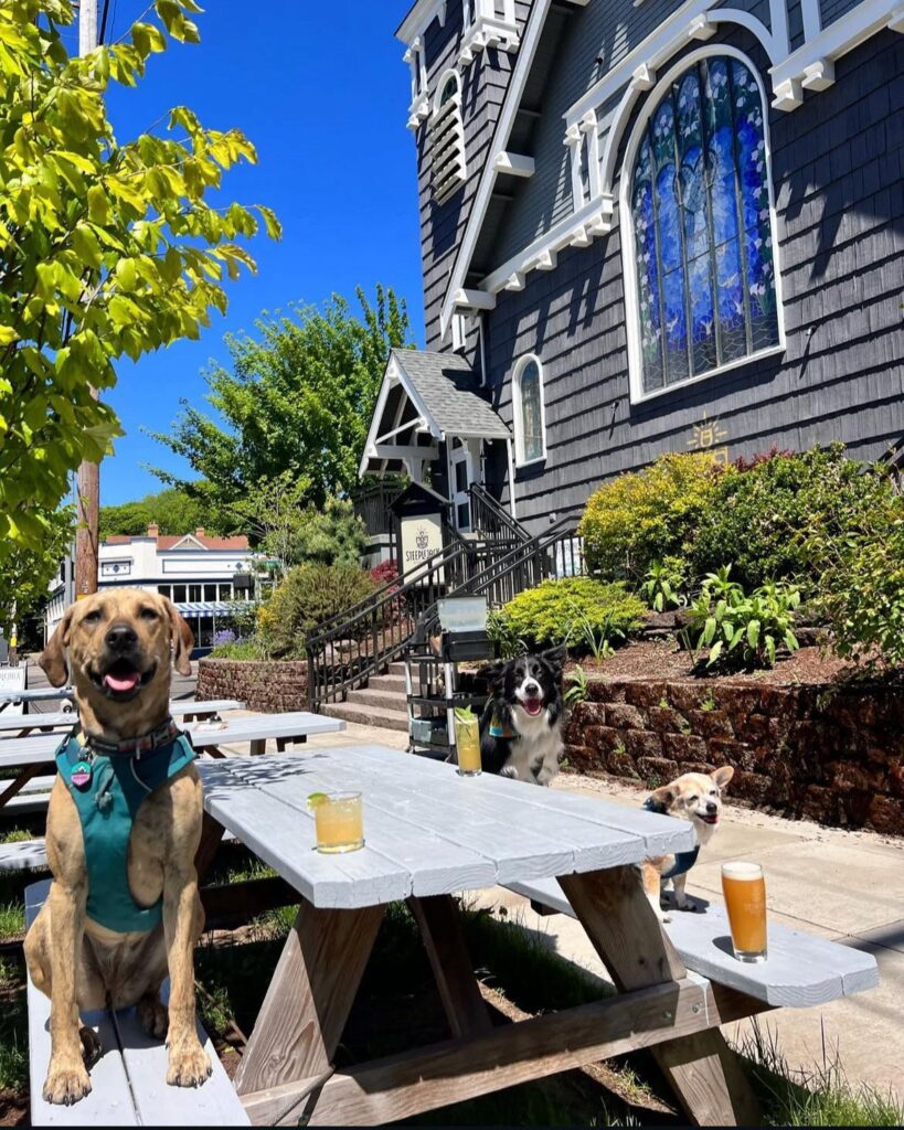 Steeplejack Brewing Company in Portland, Oregon, operates within a restored church that adds architectural character to the experience. Patio seating allows dogs to join guests while enjoying fresh air away from the main interior.