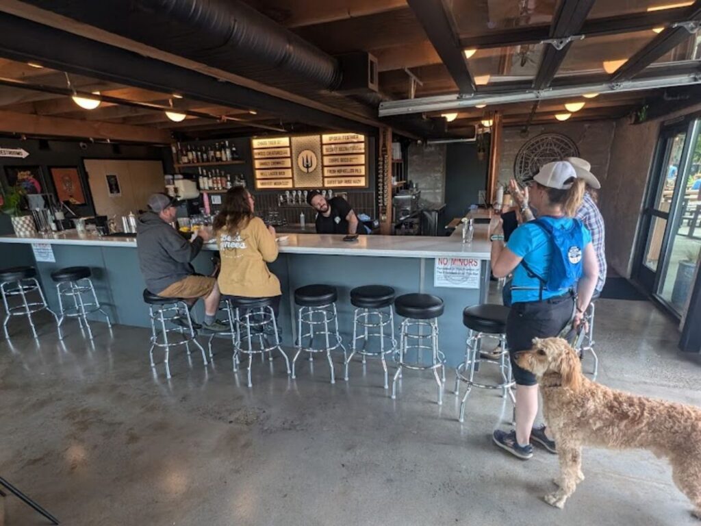 Wayfinder Beer’s Downtown Troutdale location places craft beer near the western entrance of the Columbia River Gorge. Patio seating welcomes dogs, making it a comfortable stop after scenic drives or nearby walks.