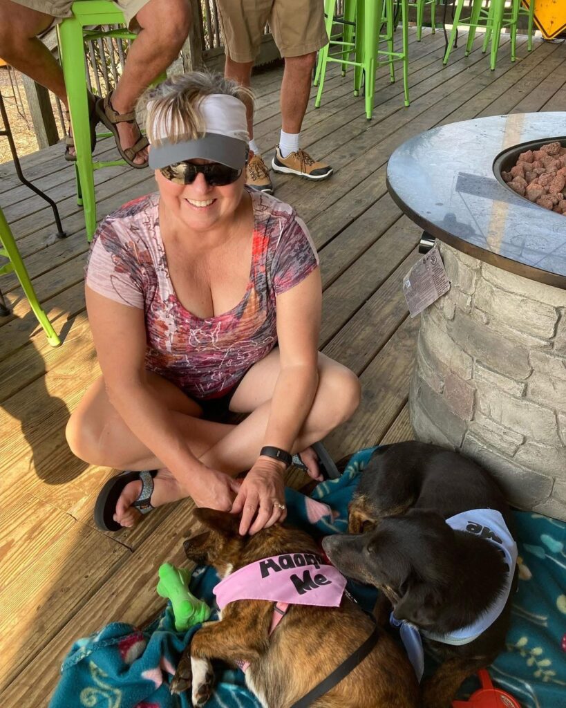 Peaceful Side Brewery in Maryville, Tennessee, rests along the quieter approach roads leading toward Great Smoky Mountains National Park. Guests can enjoy the open-air seating while dogs settle comfortably nearby after a day of mountain driving.